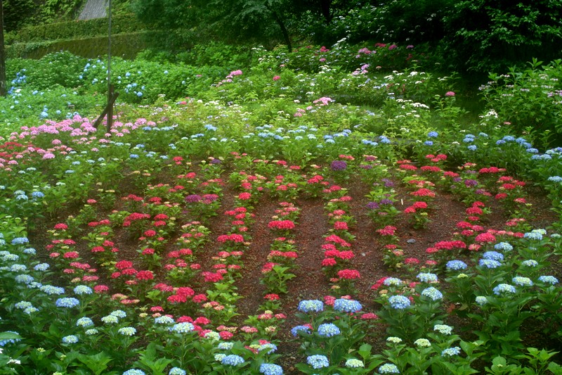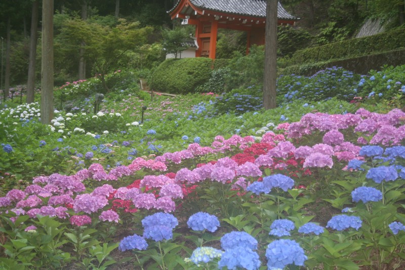 あじさいは7変化と言われるように、赤はより赤く、青は薄い青色に変わっていきます。