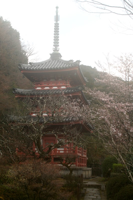枝垂れ桜はただいまチラホラ咲き。シャクナゲの蕾も大きく膨らんできました。