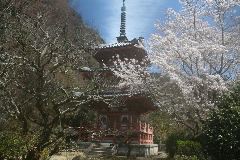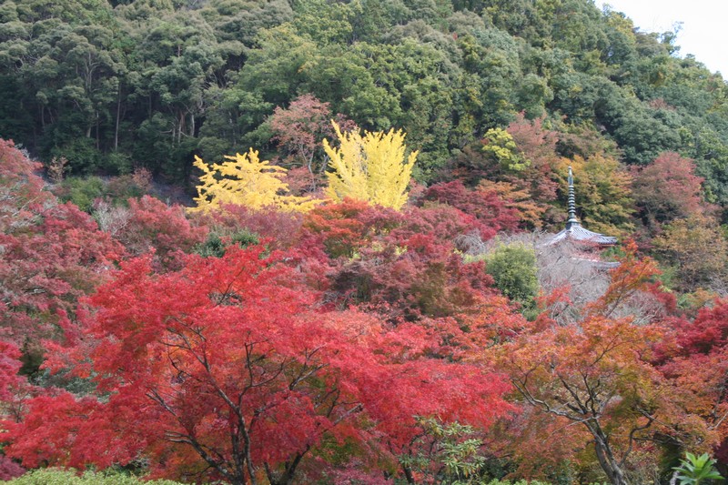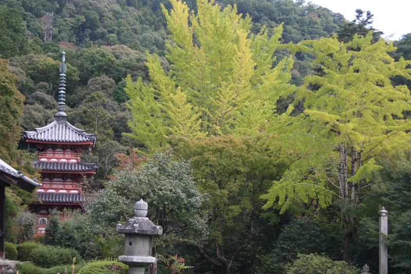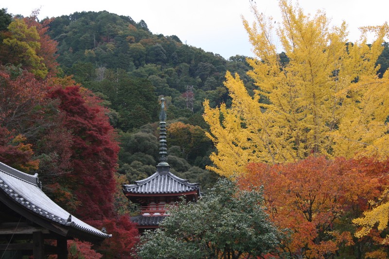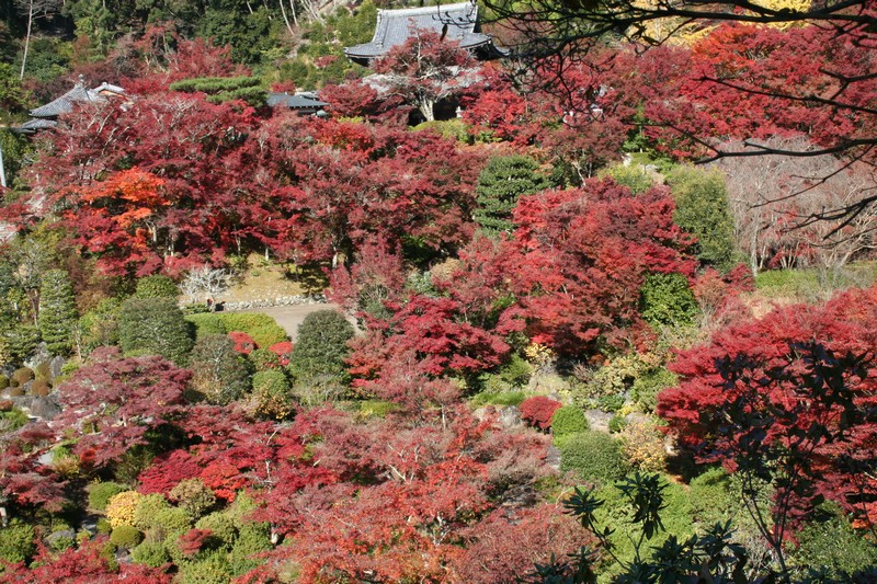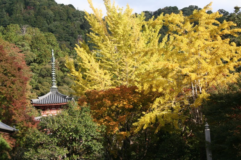 三室戸の紅楓 一段と鮮明に赤く染まり、イチョウも黄金色になりました。
