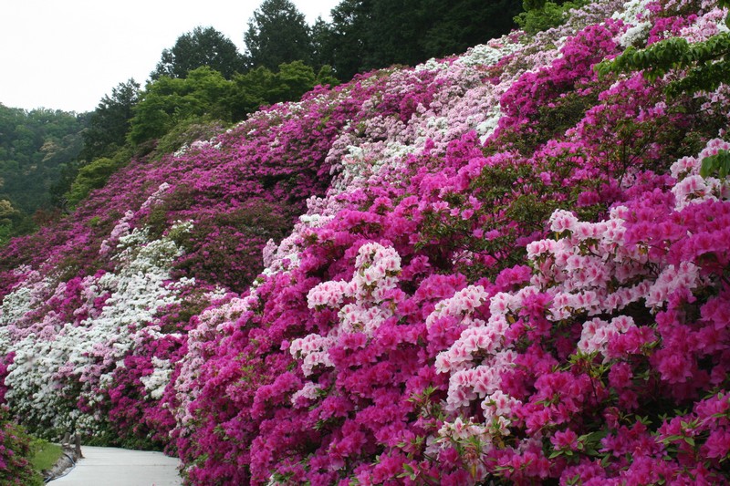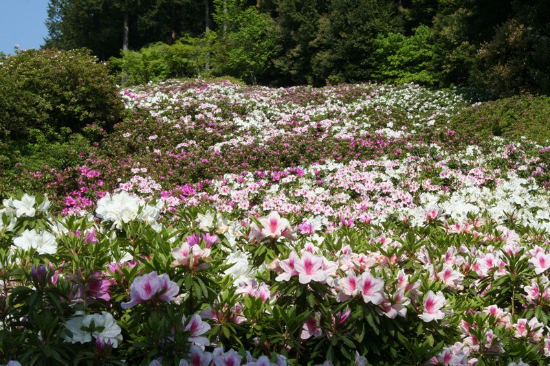 満開となりました。紫、白、ピンクのつつじは眩いほどです。11日から、剪定作業始めますので、今週中にお楽しみください。