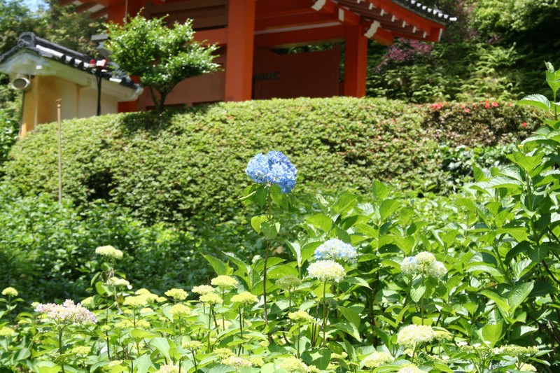 今朝のあじさいは雨の恵みをいただき、生き生きとしています。石庭の皐月が見頃です。