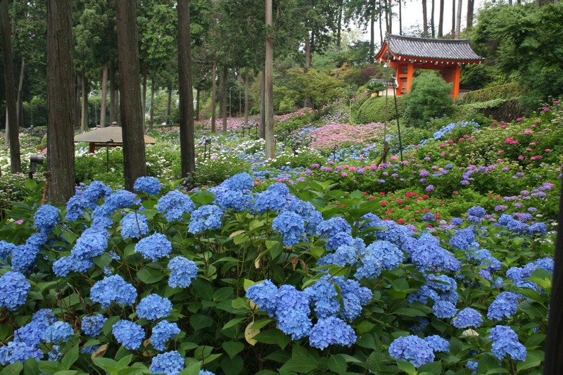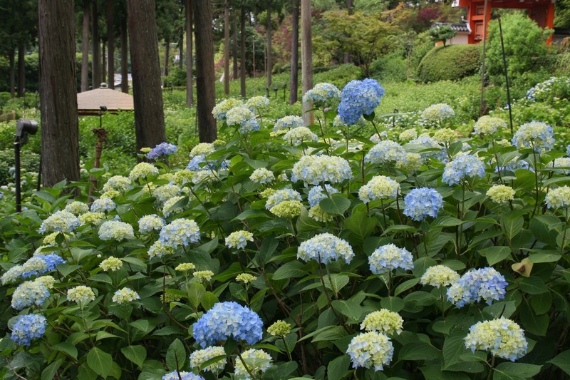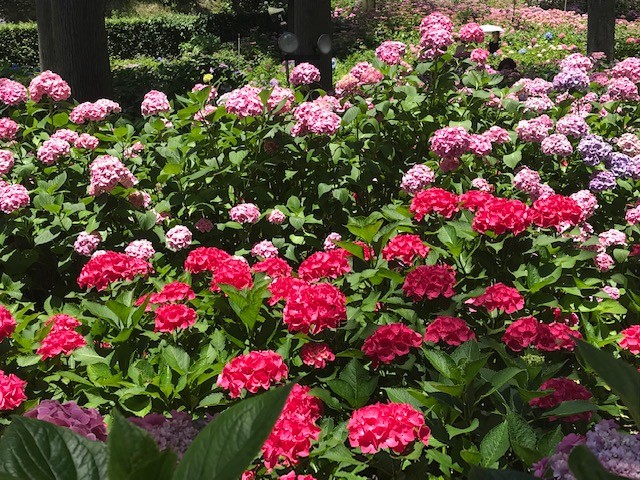 ガクアジサイ青、タマアジサイ青、ローズピンク、スカイブルー、ファンファーレなど30種1万株が新たに植栽され、総計2万株のアジサイ園となりました。