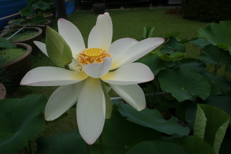 15日からハスが咲き始めました。ただいま数十輪の白、赤、黄色の花を、楽しむことができます。