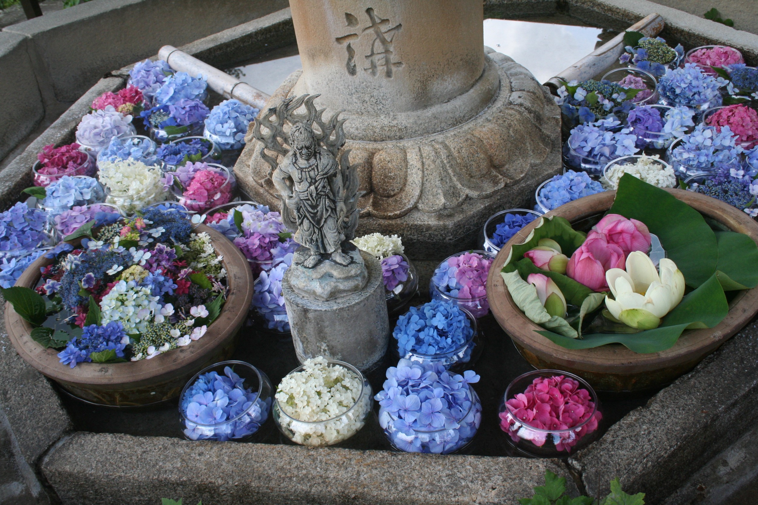 数日前より、アジサイとハスの花の花手水を開始しています。